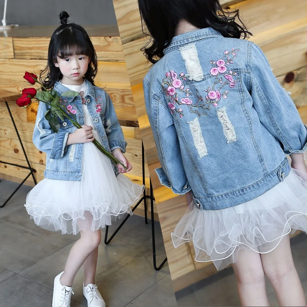 .Gallery about Jeans Jacket Girls Kids Fashion Embroidery Outerwear Coats for Toddler Baby Plum and Peach Blossom Denim Jackets Spring 2019 Top